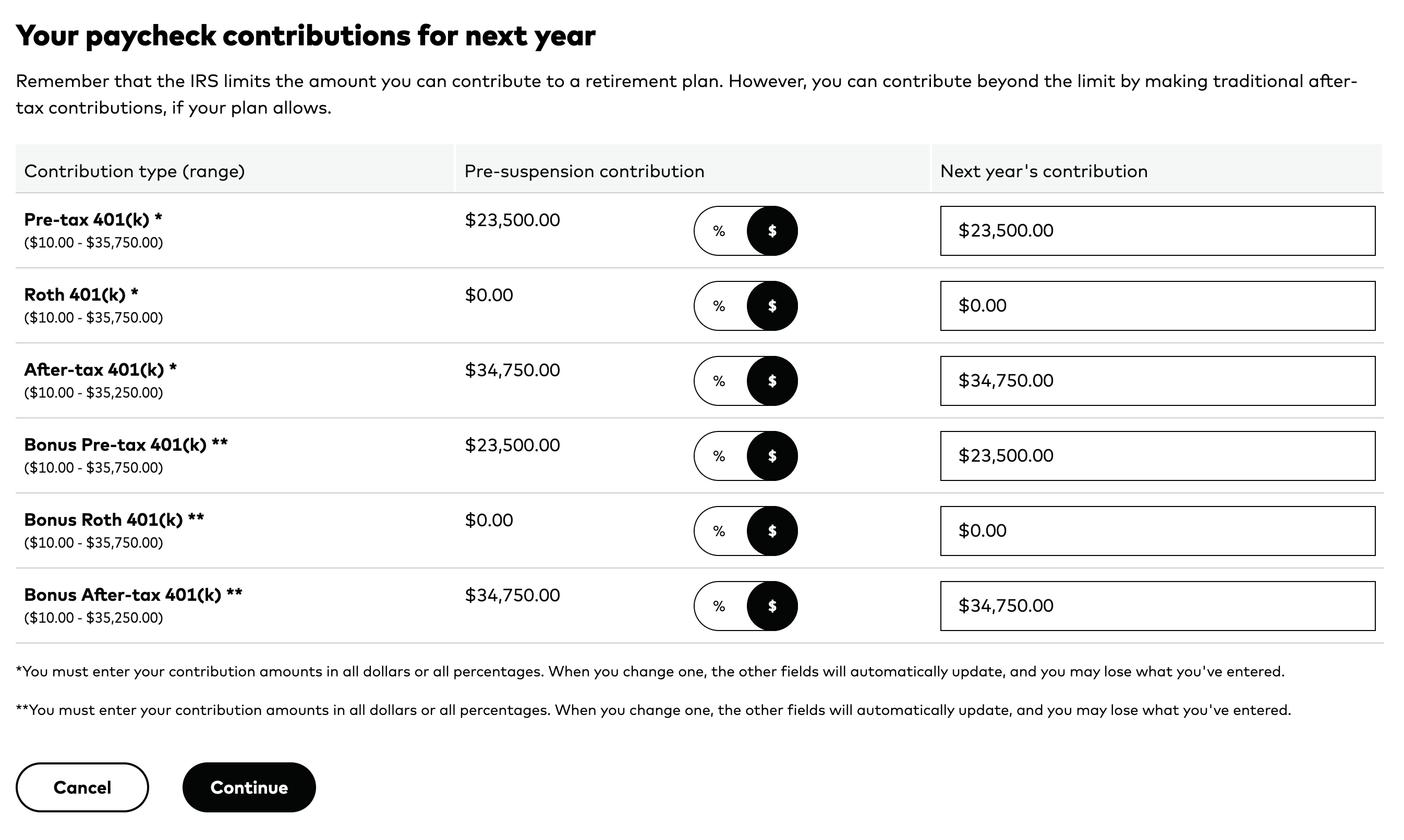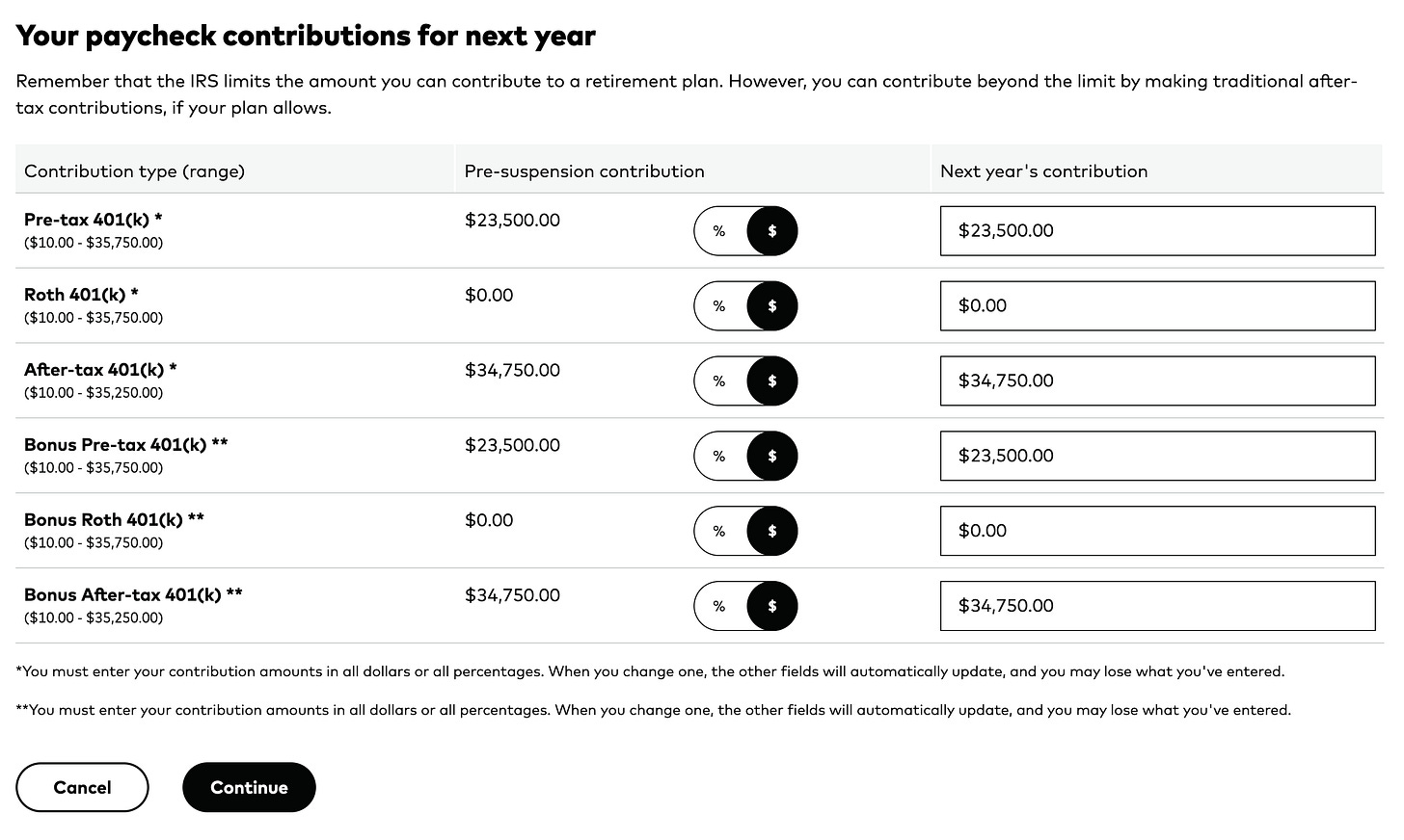 Investments into retirement accounts should be fully automated. Contributions will come straight out of your paycheck. You may need to adjust contributions once a year, since IRS limits change and health insurance policies change.